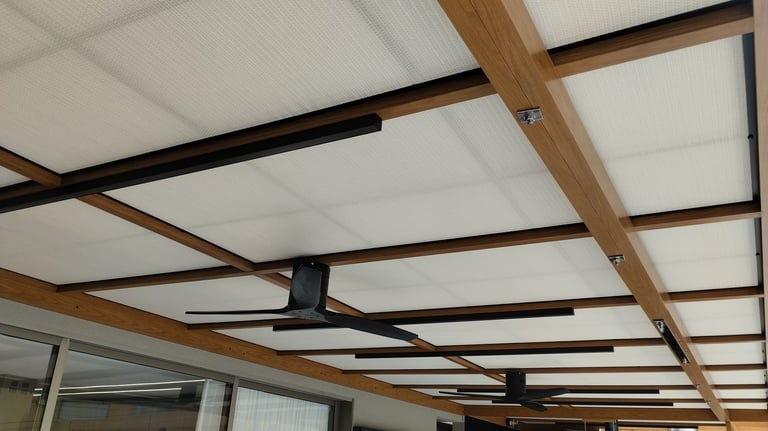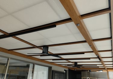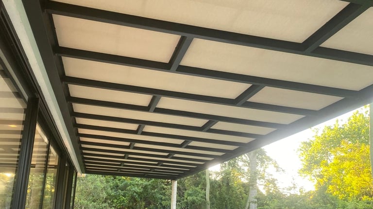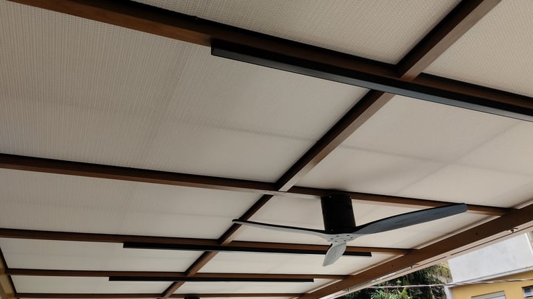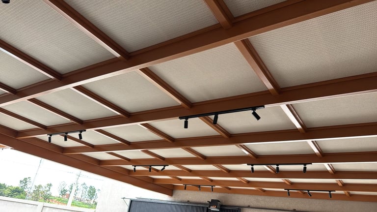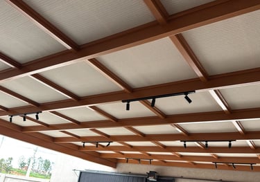Realizamos a instalação da palha sintética de forma eficiente, grampeando-a diretamente nas madeiras. Após a instalação, você pode adicionar vidro, policarbonato ou telas, proporcionando ainda mais resistência e sombreamento, além de permitir a passagem de ar e luz natural.